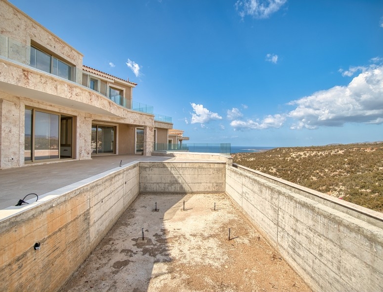 Beautiful five bedroom detached villa situated high up on a hilltop within the area of the gorgeous Akamas peninsula in the Paphos district. Breathtaking panoramic views, privacy and surrounded by nature. There is a photovoltaic system in place and for the private swimming pool, electric gates and double car port. There is an outdoor kitchenette area with barbeque facilities. Fly screens on all the double glazed windows. Marble staircase and granite worktops. There is also an amazing roof garden that allows to enjoy and entertain in front of the most amazing views.