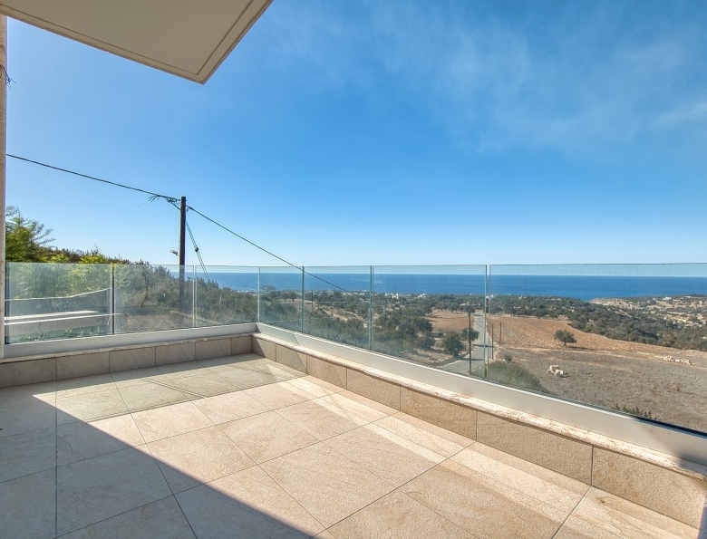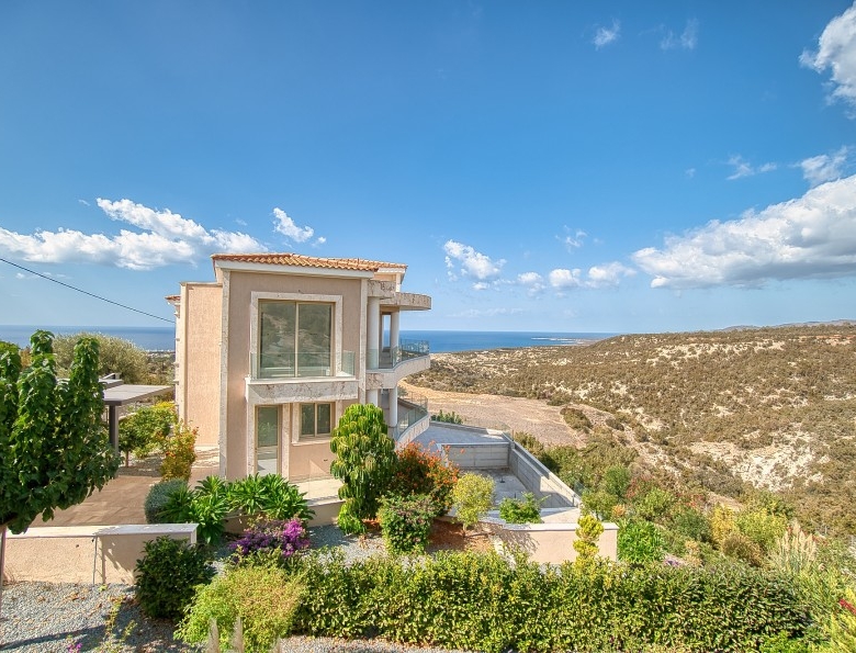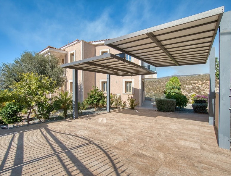 Beautiful five-bedroom detached villa situated high up on a hilltop within the area of the gorgeous Akamas peninsula in the Paphos district. Breathtaking panoramic views, privacy, and surrounded by nature. There is a photovoltaic system in place, and for the private swimming pool, electric gates, and a double car port. There is an outdoor kitchenette area with barbecue facilities. Fly screens on all the double-glazed windows. Marble staircase and granite worktops. There is also an amazing roof garden that allows you to enjoy and entertain in front of the most amazing views.