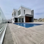 4 bedroom villa in Petridia. Enter into a spacious open plan lounge/ dining/ kitchen area with a guest toilet. The highlight would definitely be the big sliding doors that lead onto the patio and lovely private pool that’s surrounded by a lot of greenery. Upstairs there are two double bedrooms and one singe one. The master bedroom has it’s own big balcony with views to the sea and an en suite bathroom. The other two bedrooms have a connecting balcony and a shared family bathroom.
