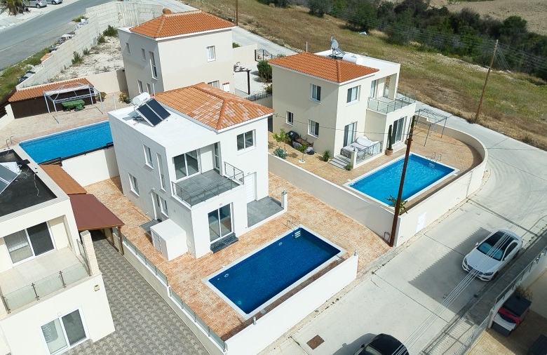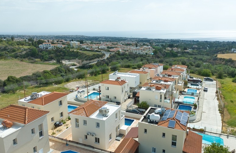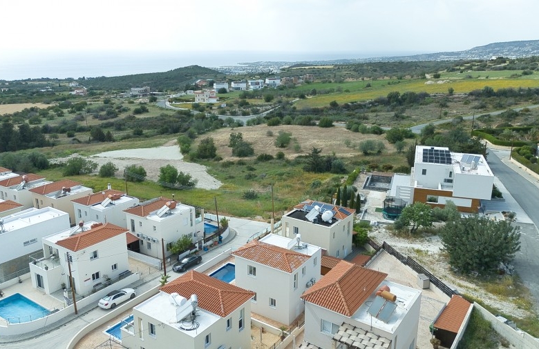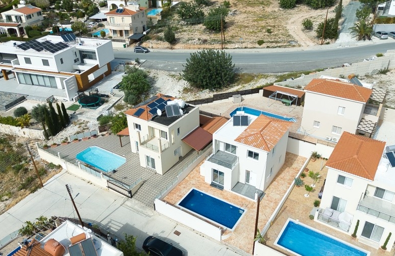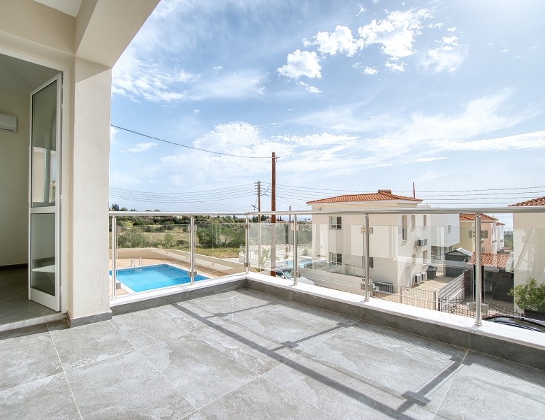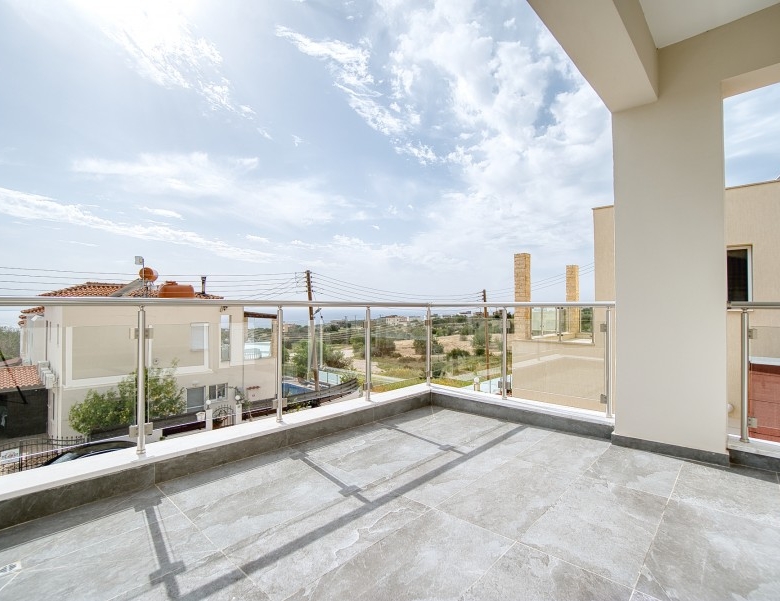 This modern property is situated in a tranquil neighborhood in the sought-after village of Tala, famous for the stunning views and cold breezes during the hot summer months and within close proximity to Tala Square with all the restaurants, tavernas, pubs, kiosks, bakeries, pharmacy, schools and many more. Opening the entrance door the open plan living/dining area and the spacious kitchen will greet you. You will also find the double bedroom with a large en-suite shower room. Taking the stairs to the 1st floor you will find the family bathroom, the double bedroom, and the master bedroom with en suite facilities. The double bedroom and the master bedroom have access to a shared balcony with lovely views of the sea and surrounding areas. Stepping outside you will find the private swimming pool, storage room, and relaxation /sitting areas.