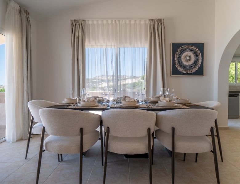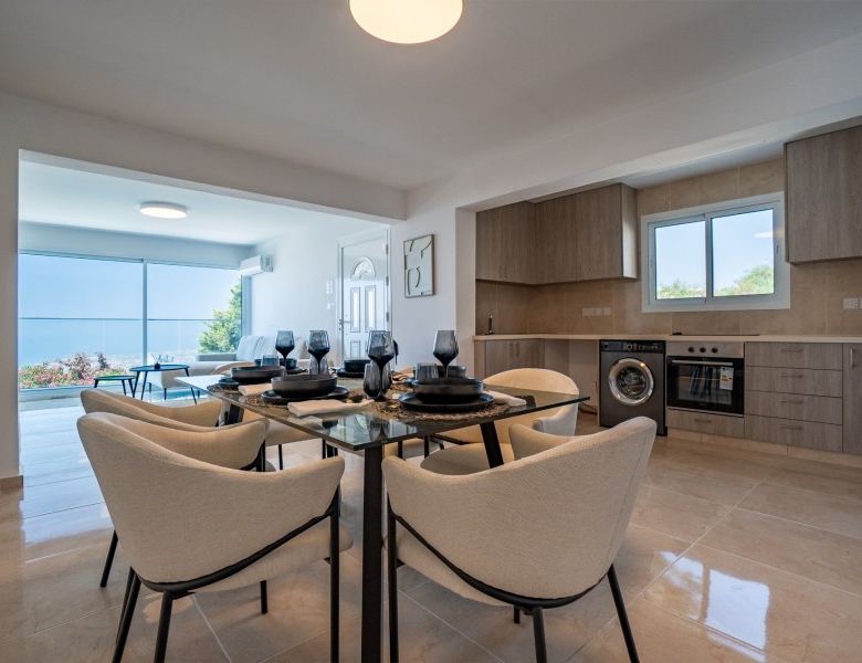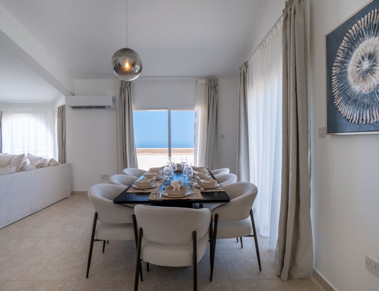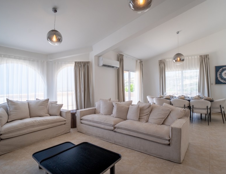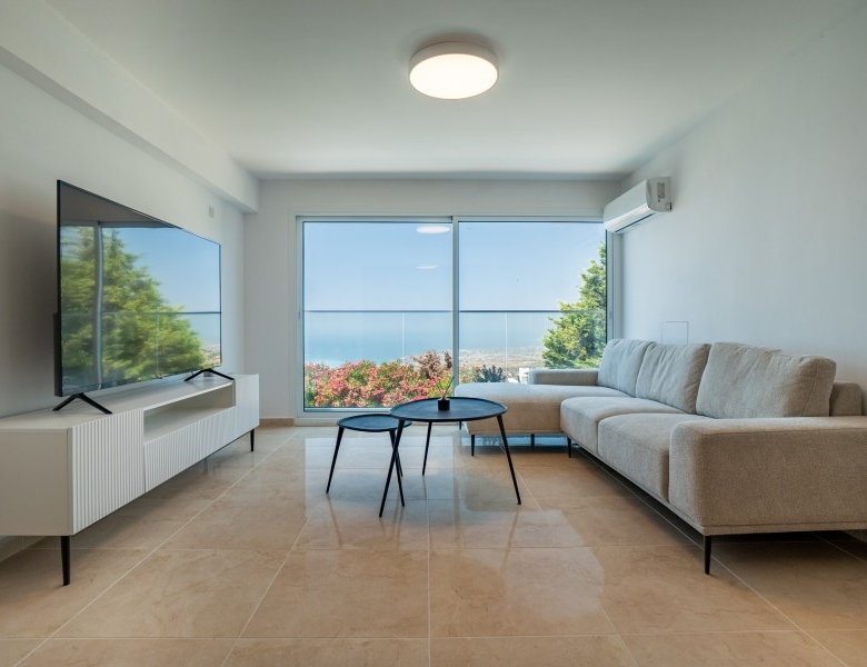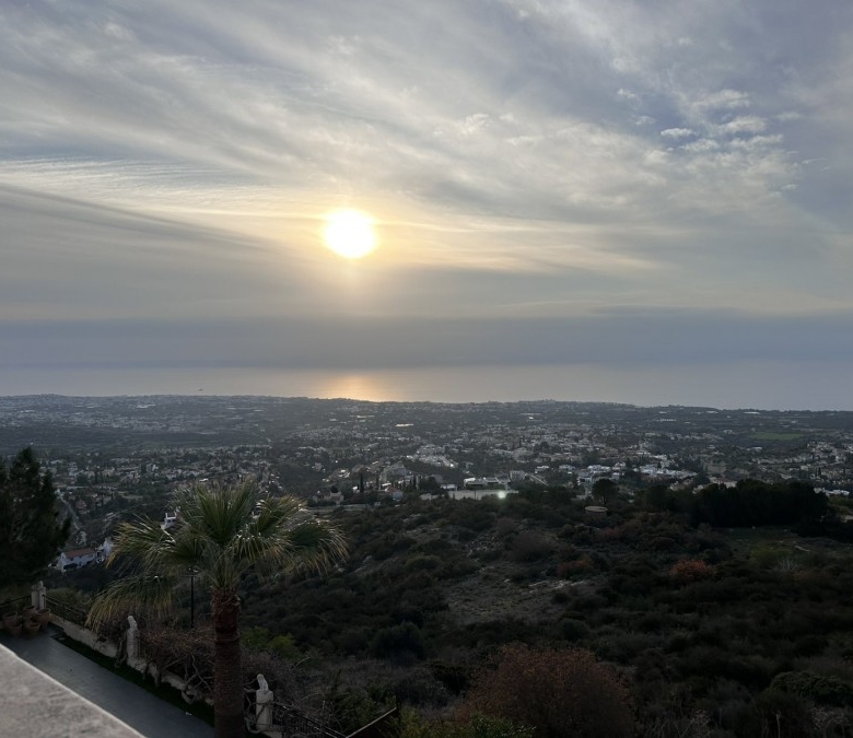 A luxury detached five-bedroom villa elegantly set on the peaks of the St. Neophytos mountains commanding one of the finest unobstructed views over Pafos. The quiet location offers the peaceful lifestyle with Pafos town, offering many amenities, only a 10 minute drive away. Built to the highest standards, we have taken advantage of a convenient elevation and added an extra lower ground consisting of one bedroom, kitchen, bathroom and sitting room. This lower ground can be used as a self-contained apartment by a separate entrance and by an indoor staircase as part of the villa. It has also unobstructed sea view. All levels of the villa, ground floor, first floor, and the pool area enjoy the same unobstructed panoramic views over Pafos. Plus Annex of 84 square meters.