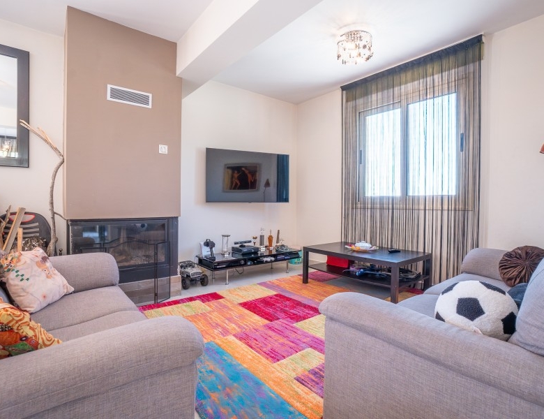 Inside, you’ll find an open-plan kitchen, a cozy fireplace, and thoughtful features such as fly screens, shutters, a guest toilet, and a storage room. The home is partly furnished and includes a modern photovoltaic system, helping you reduce energy costs.