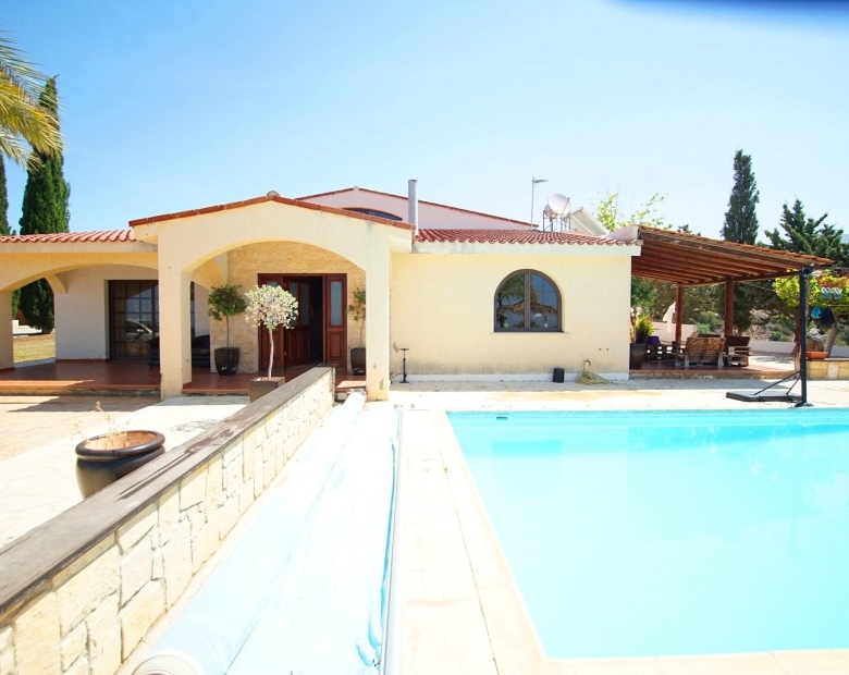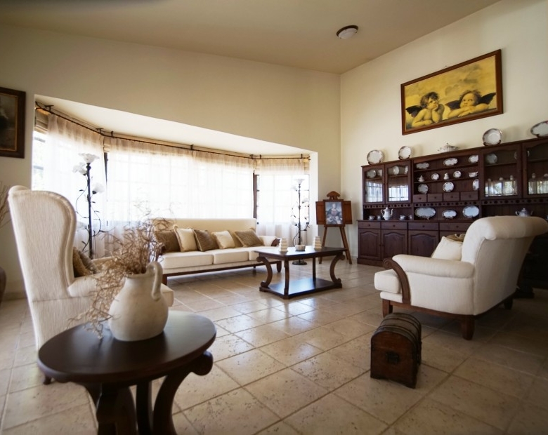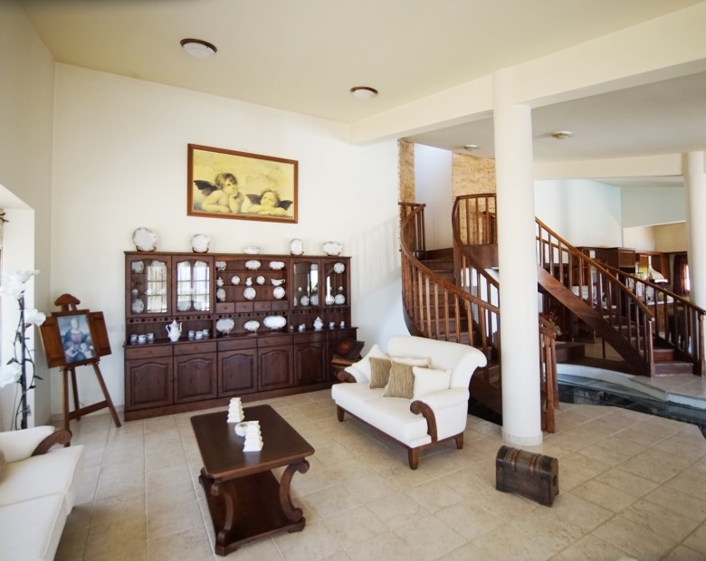 3-bedroom villain Tala. This villa is just a short drive from the traditional village square of Tala, where you will find bars, restaurants and taverns. Tala also offers a bank, shops and a pharmacy. Also a short drive from the village of Kissonerga. Entering the double entrance doors, you will first notice the double staircase and the function of the floor. To the left is a spacious living room with a large bay window. To the right of the entrance is a second sitting area, as well as a spacious kitchen and dining area. Also on this floor there is a TV, a playground with a fireplace, two utility rooms, a pantry and a cloakroom for guests. The first floor consists of a master bedroom with a separate shower room, two bedrooms with an adjoining room in front, ideal as an office or study, and a full family bathroom with a large Jacuzzi.