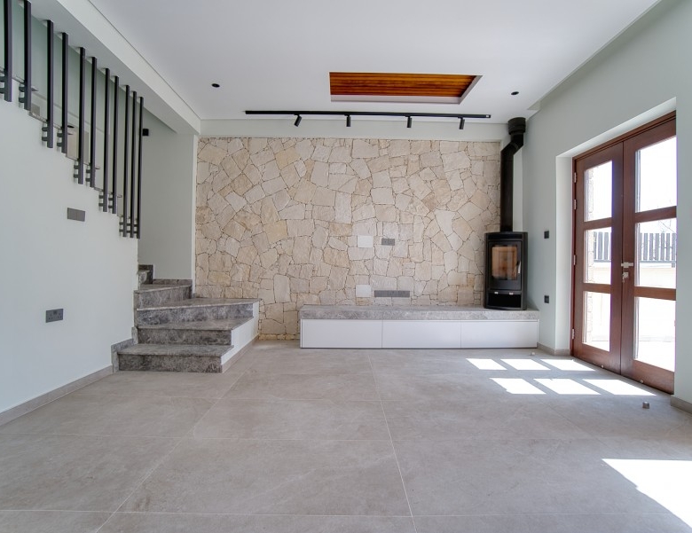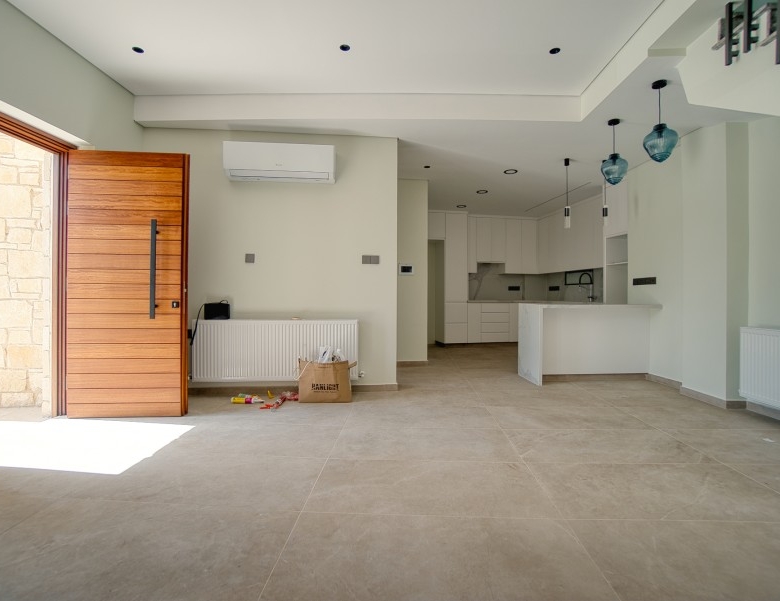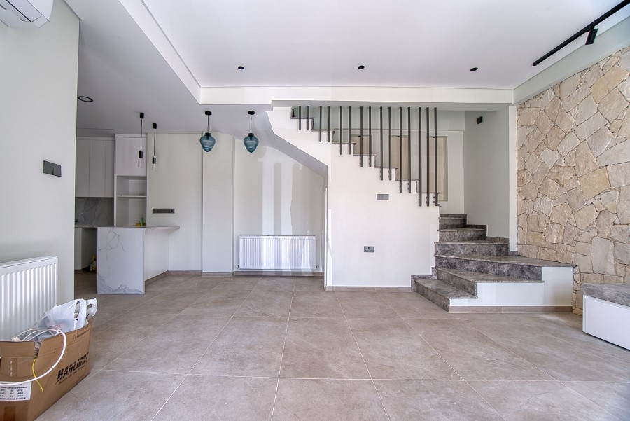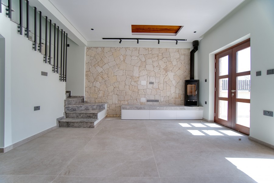 Nestled in the charming village of Tremithousa in Paphos, this beautifully designed semi-detached villa offers a perfect blend of comfort, style, and practicality. The property spans 120m² of covered space and 30m² uncovered veranda on a 145m² plot and features three spacious bedrooms, including a master with an en suite bathroom. The villa is thoughtfully equipped with modern conveniences such as air conditioning, central heating, double-glazed windows, and provisions for electric shutters and EV charging. A sleek open-plan kitchen and a cozy fireplace create a warm and inviting atmosphere, ideal for everyday living and entertaining.