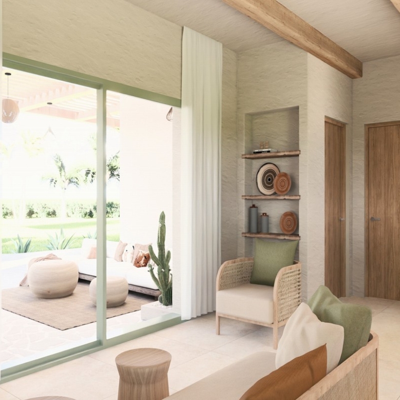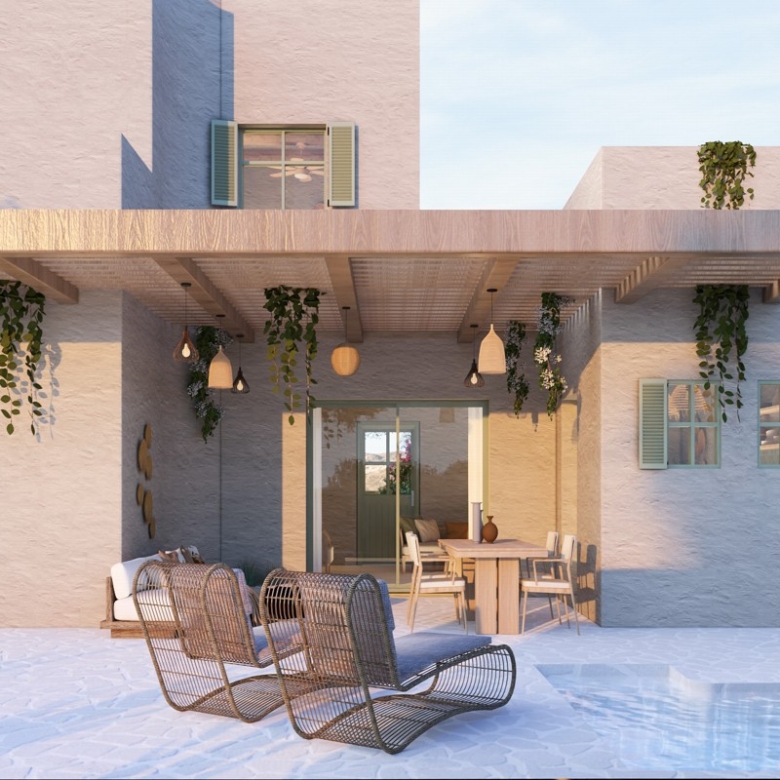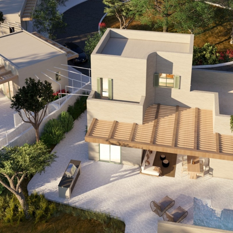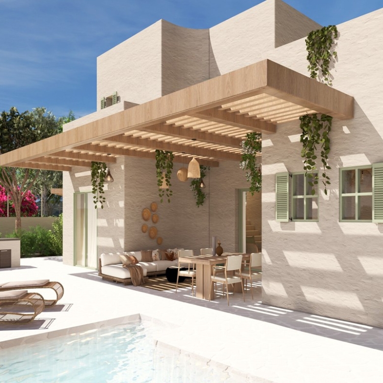 With a building permit for 108 sqm on a private 1,000 sqm plot, the modern design blends seamlessly into the landscape and includes a private swimming pool and a low-maintenance landscaped garden.