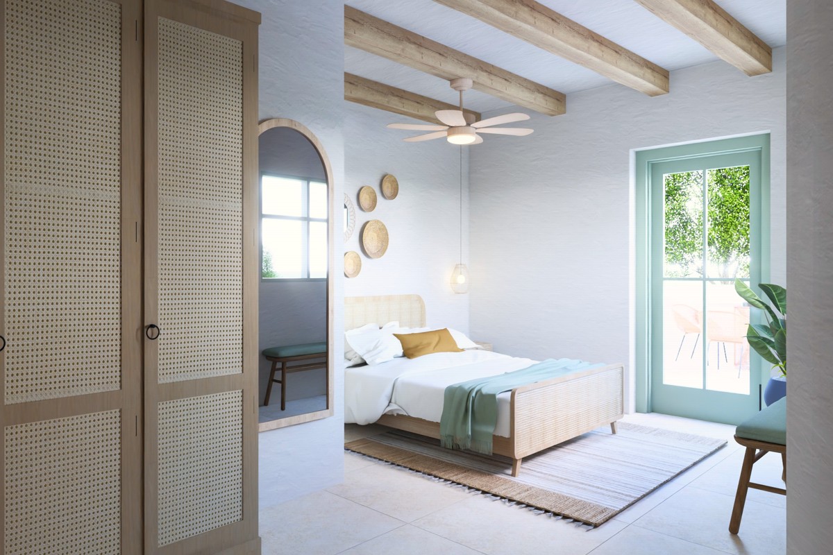 Upstairs, the master bedroom enjoys a private terrace with panoramic mountain and sea views, accompanied by a second bathroom.